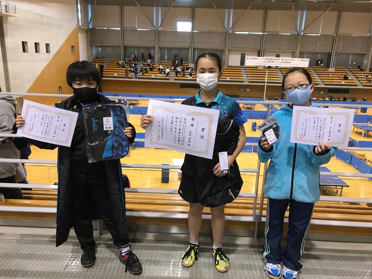2020-11-27 【試合結果】全国ホープス卓球後援会会長杯(東日本小学生オープン卓球大会) 期日:令和2年11月22日(日)・23日(月) 会場:岩手県 花巻市総合体育館 ◆ホープス女子 〔トップトーナメント〕 木村:優勝福原:ベスト8 〔3.4位トーナメント〕五十嵐:第3位 ◆ホープス男子〔トップトーナメント〕浅野:ベスト16鈴木(卓):ベスト16〔3.4位トーナメント〕逸見:1回戦◆カブ女子〔トップトーナメント〕高橋:ベスト8◆カブ男子 〔トップトーナメント〕 井村:ベスト8 〔3.4位トーナメント〕大沼:優勝鈴木(孝):1回戦